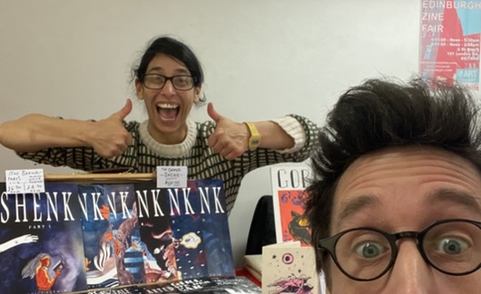 October had me tabling at London’s Small Publishers Fair and the Edinburgh Zine Fair. I was joined at the former by Dickon and Dowie. The SPF was a bit stressful, largely because the courier failed to deliver Dickon’s books, the launch and promotion of which was the main point of being there. It was fun though, albeit resolutely in the realm of Type 2 fun. The evening of the 24th also saw Dickon’s book launch at the Boogaloo, for which we still didn’t have any books but people gladly bought New Escapologist in which DE has an extended interview. Edinburgh Zine Fair was easier: closer to home and far lower stakes (plus I met Goblin, pictured below).